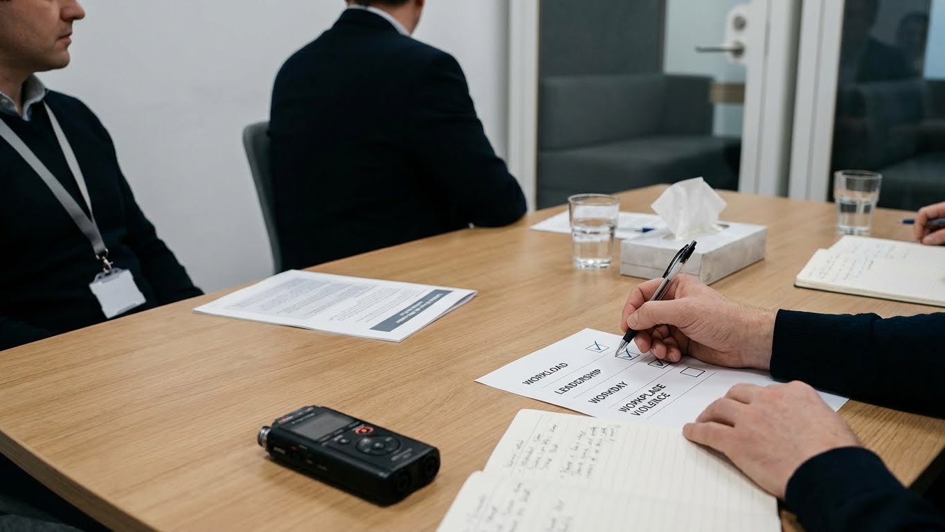 Estrés laboral, violencia, liderazgo negativo, cargas excesivas y clima organizacional.